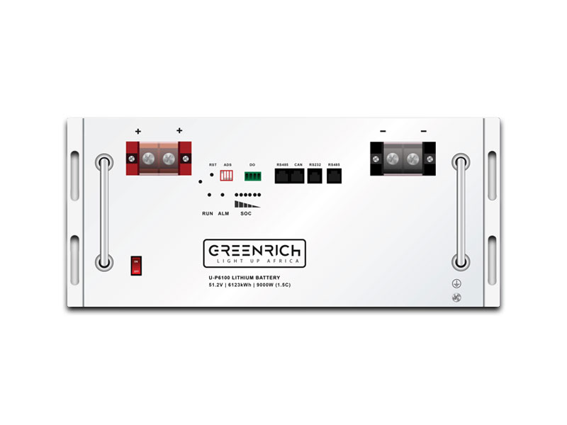 The Greenrich UP6100, also known as the AU9000 household energy battery, is a high-capacity, high-power low-voltage lithium battery designed for solar systems that must carry heavy loads reliably. Built using lithium iron phosphate (LiFePO₄) cell technology and a robust Battery Management System, the UP6100 is engineered to deliver sustained power output while maintaining long cycle life and system safety.