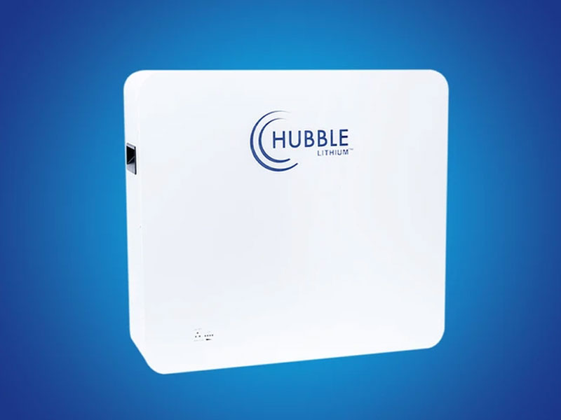 The Hubble AM-10 battery stores DC electrical energy and supplies it to a compatible low-voltage inverter. It is designed to: