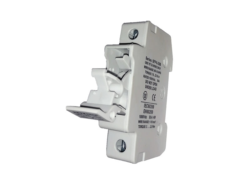 PV Fuse Holder 30Amp Solar PV DC fuse holder 10mm x 38mm fuse link. Rated Current 30A, rated voltage 1000V DC, 20 KA.