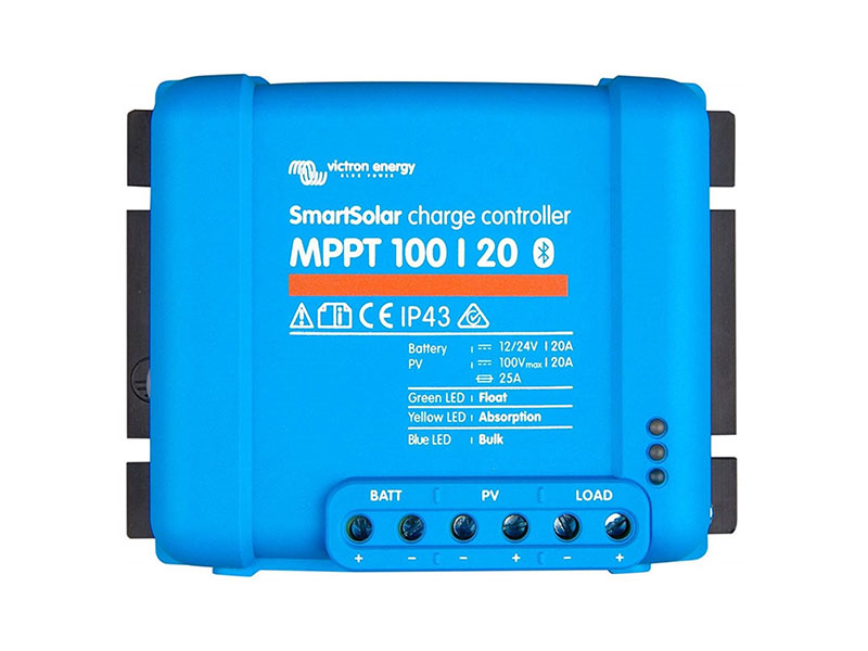 Victron SmartSolar 100 VOC, 20 Amp MPPT solar panel charge controller for 12, 24 and 48-volt battery systems (including Lithium) with Bluetooth.