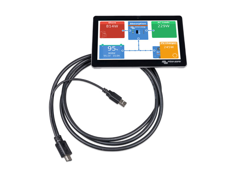 The GX Touch 70 connects to the Cerbo GX via a single cable (included), simplifying installation and reducing wiring clutter. -